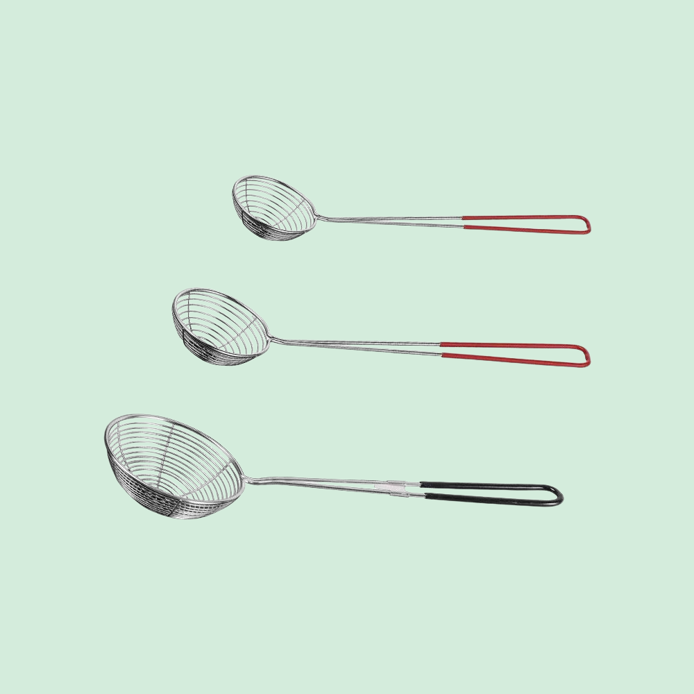 耐久性の高いステンレス製パールザル。錆びにくく、お手入れ簡単。食材の水切りや調理に最適。