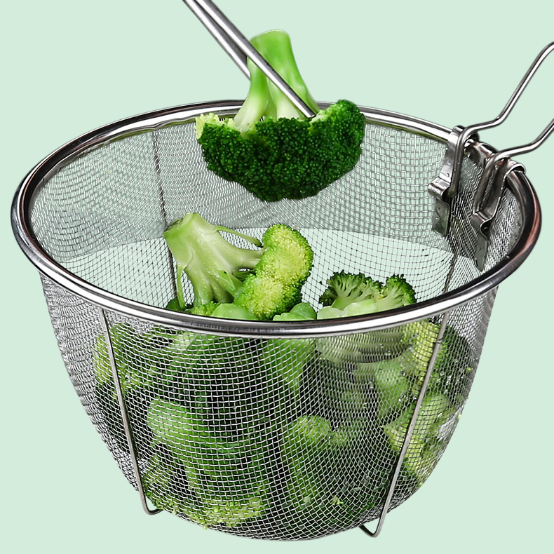 サビに強いステンレス製。折りたたみ式で収納簡単。食材の水切りや洗浄に便利な家庭用ザル。